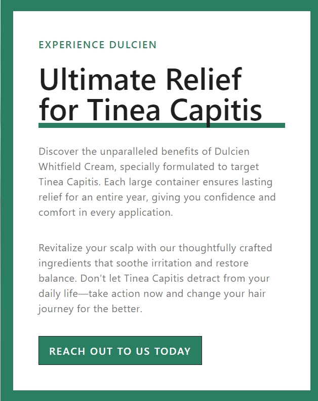 Dulcien Whitfield Ointment Cream emerges as a promising ally, its large containers ensuring comprehensive care. Whether you’re a parent, an adult patient, or a caregiver, you should understand Tinea Capitis. Addressing it promptly can efficiently restore scalps and peace of mind.